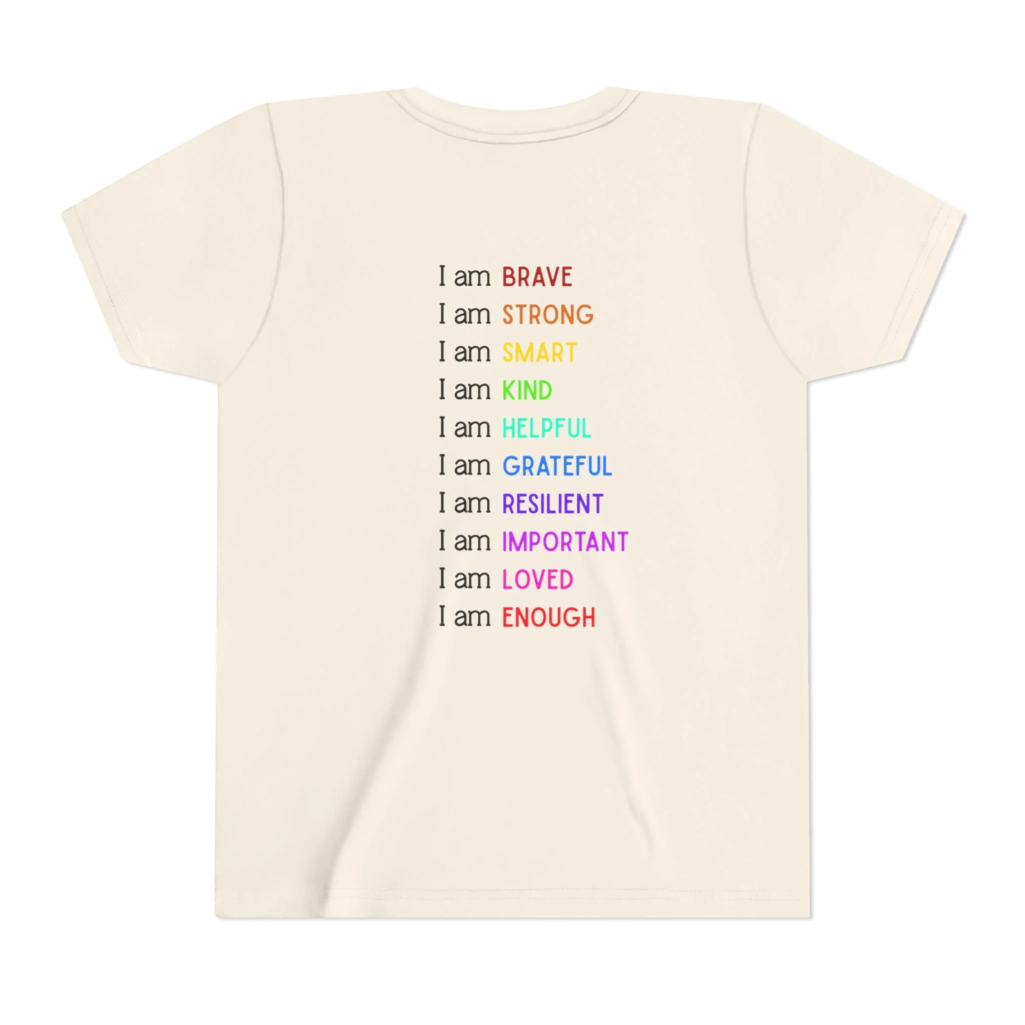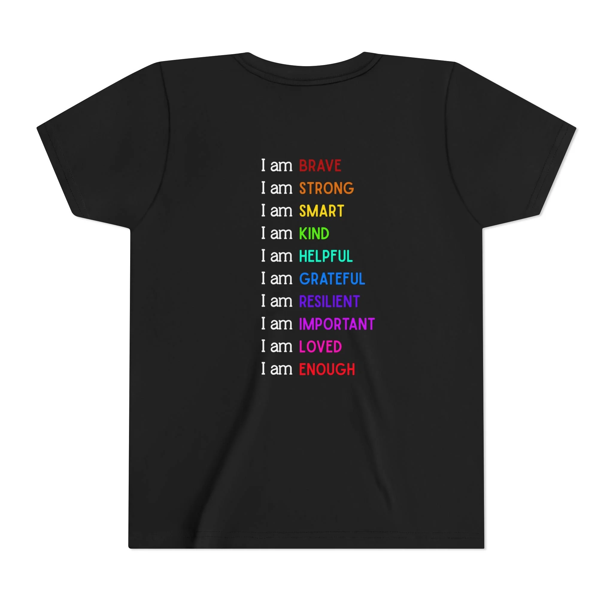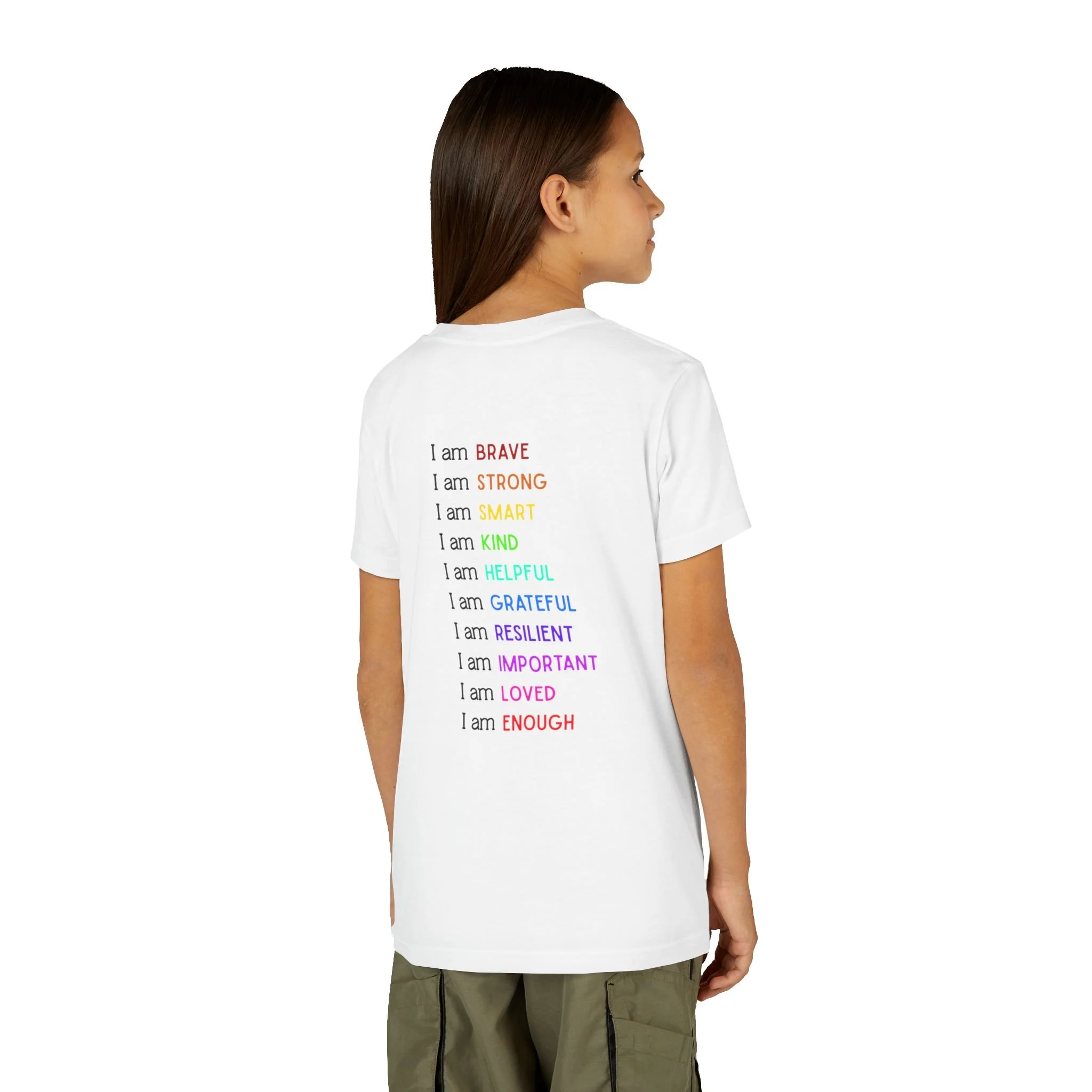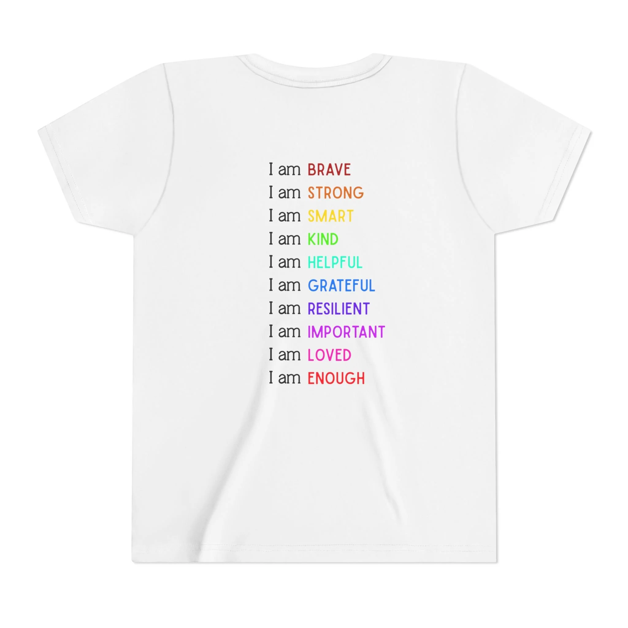 Introducing our vibrant Youth Short Sleeve Tee, designed to inspire and uplift! This cheerful t-shirt features colorful smiley faces on the front and a powerful affirmation print on the back, promoting positivity and self-worth. Perfect for everyday wear, this tee radiates joy and confidence, making it an ideal choice for kids who want to express themselves. Great for birthday parties, back-to-school celebrations, or simply lounging around at home, it’s the perfect blend of comfort and style. Ideal for parents looking to encourage their children’s self-esteem, this tee is a thoughtful gift for young ones on holidays like Christmas, Easter, or any special occasion! Let your child wear their positivity with pride!