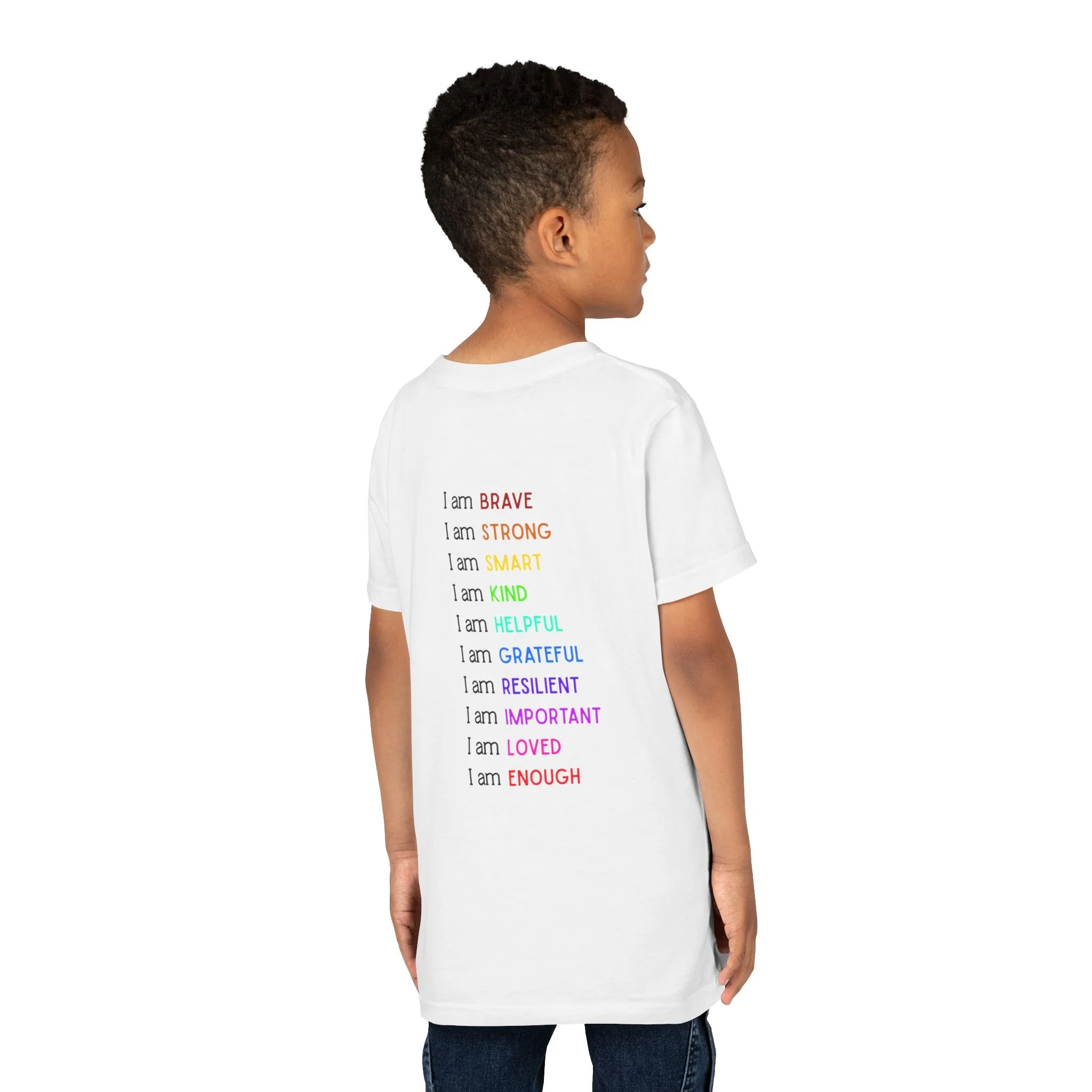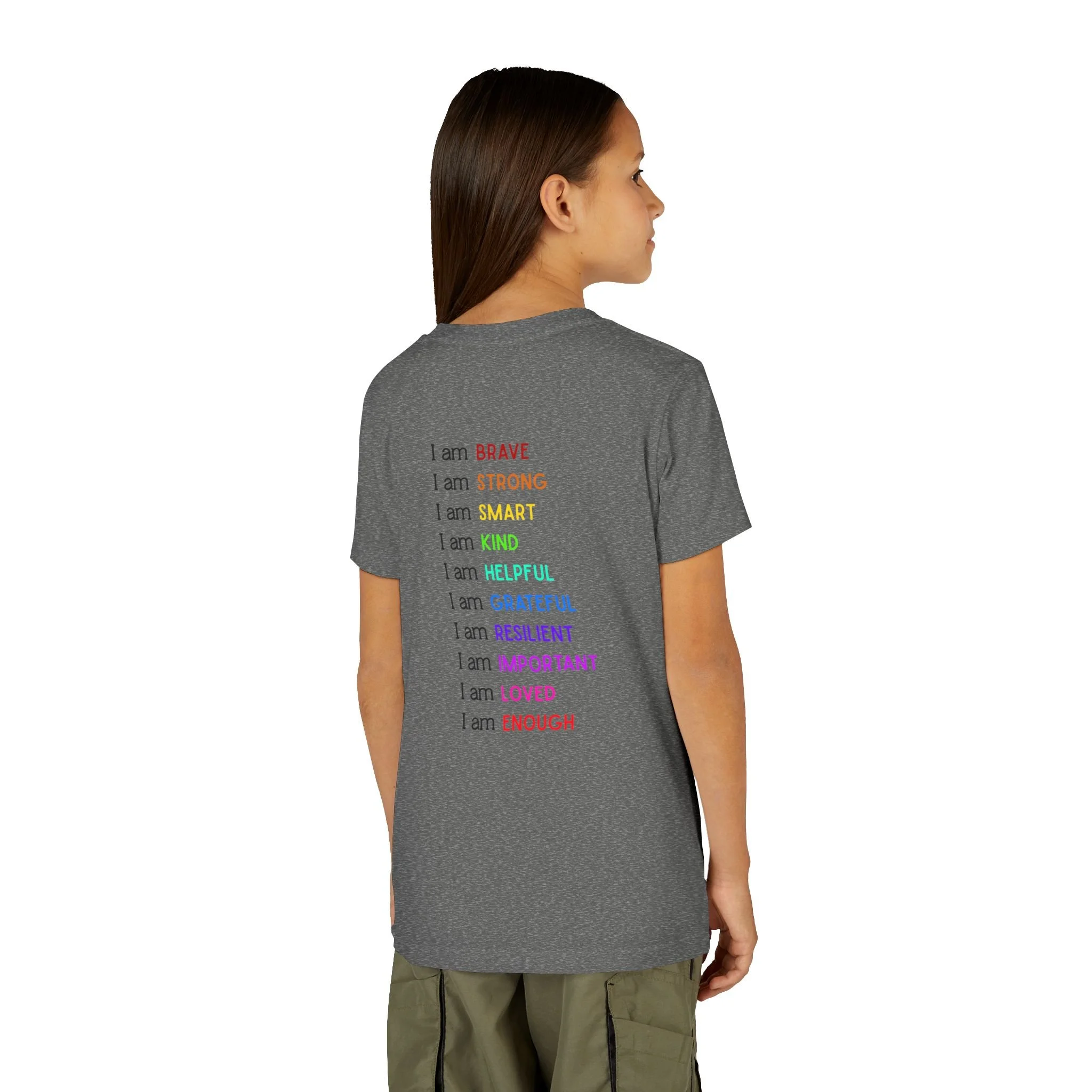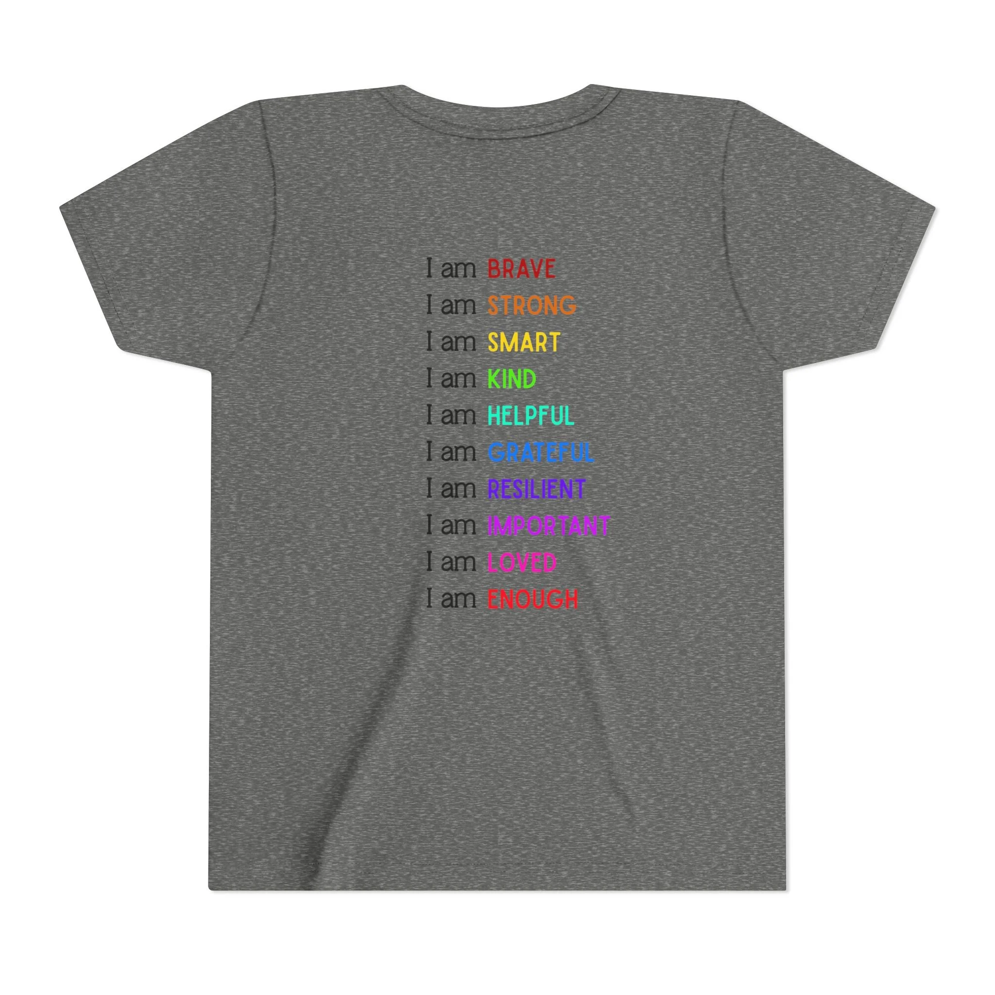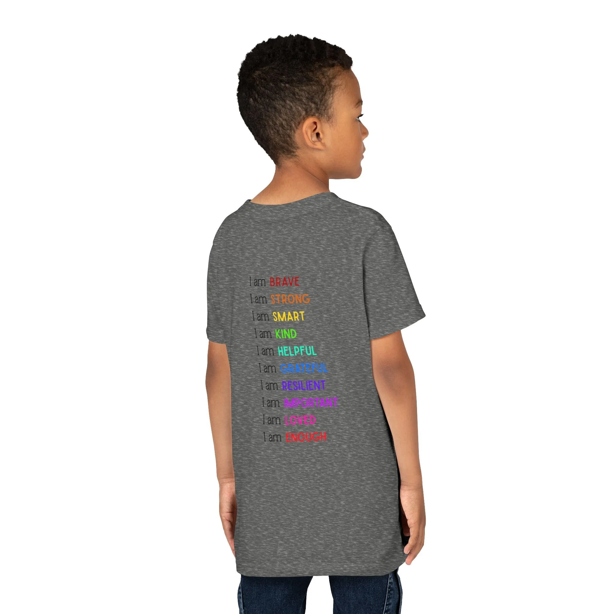 Introducing our vibrant Youth Short Sleeve Tee, designed to inspire and uplift! This cheerful t-shirt features colorful smiley faces on the front and a powerful affirmation print on the back, promoting positivity and self-worth. Perfect for everyday wear, this tee radiates joy and confidence, making it an ideal choice for kids who want to express themselves. Great for birthday parties, back-to-school celebrations, or simply lounging around at home, it’s the perfect blend of comfort and style. Ideal for parents looking to encourage their children’s self-esteem, this tee is a thoughtful gift for young ones on holidays like Christmas, Easter, or any special occasion! Let your child wear their positivity with pride!